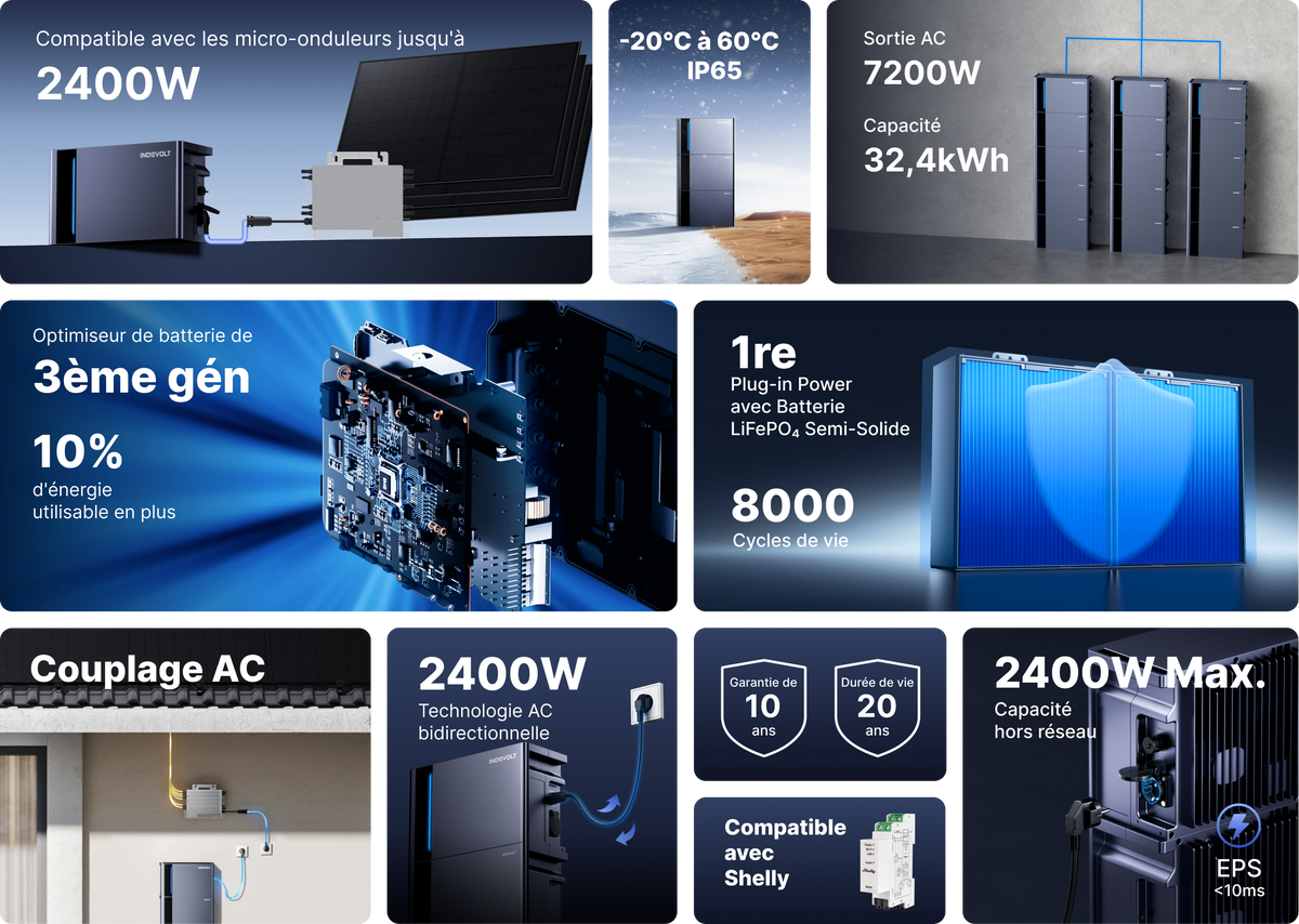 - Plug & Play avec couplage AC: 99% compatible avec votre installation photovoltaïque existante, sans frais d'installation élevés ni longues attentes.